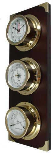 - This beautiful nautical station is made from the finest materials, and is at home in any marine environment. This bold, handsome weather station is 22" tall by 8" wide, and includes a luxurious dark cherry wood base with brass corners.