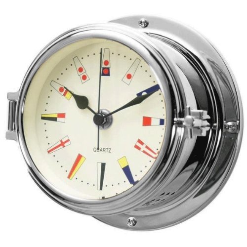 Best Buy Ambient Weather GL150-C3-C 6" Porthole Nautical Flag Clock (Water Proof), Chrome Holiday Deals
